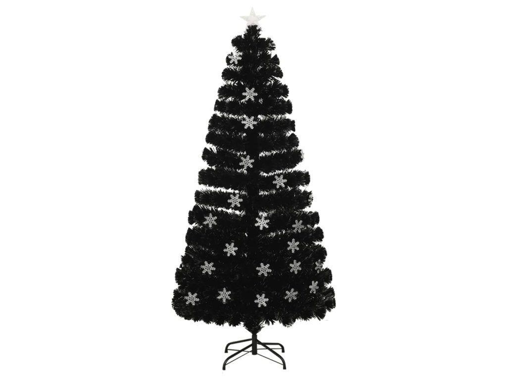 Vánoční strom s LED vločkami černý 150 cm optické vlákno 328462