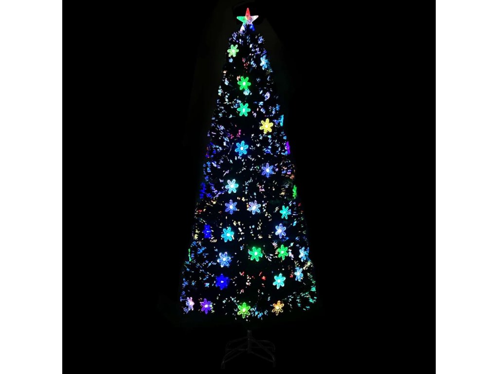 Vánoční strom s LED vločkami černý 240 cm optické vlákno 328465