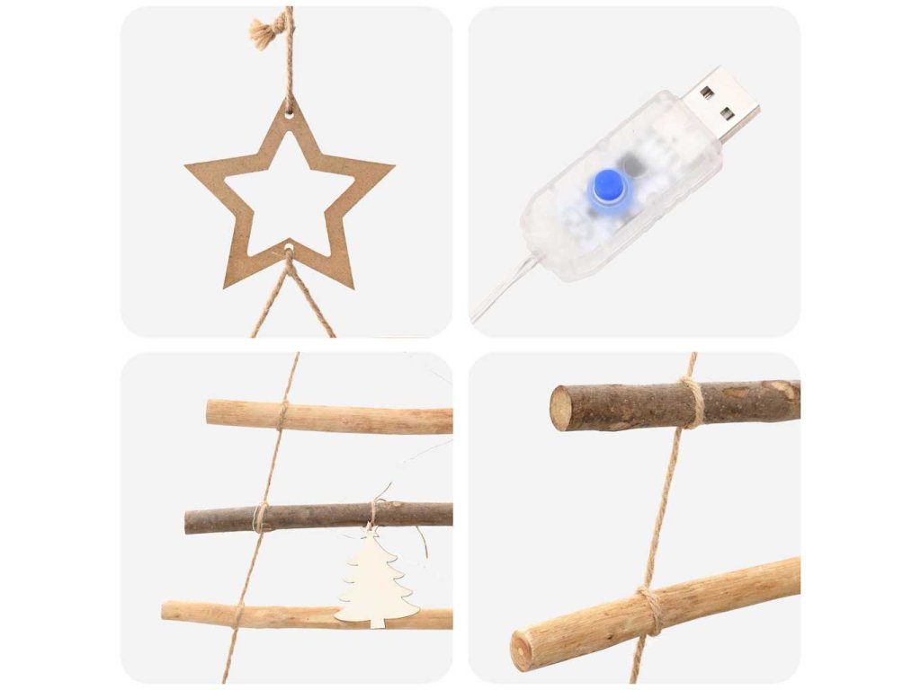 - Napájení USB Pro moderní pohodlí je stromeček vybaven USB napájením, což usnadňuje jeho osvětlení přes různá zařízení nebo adaptéry. Tato funkce ti umožní přizpůsobit si výzdobu kdekoli, takže dodáš šmrnc obývacím pokojům nebo terasám.
