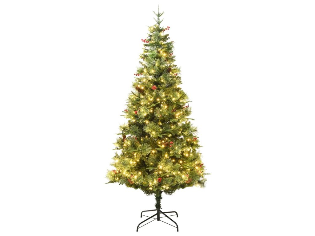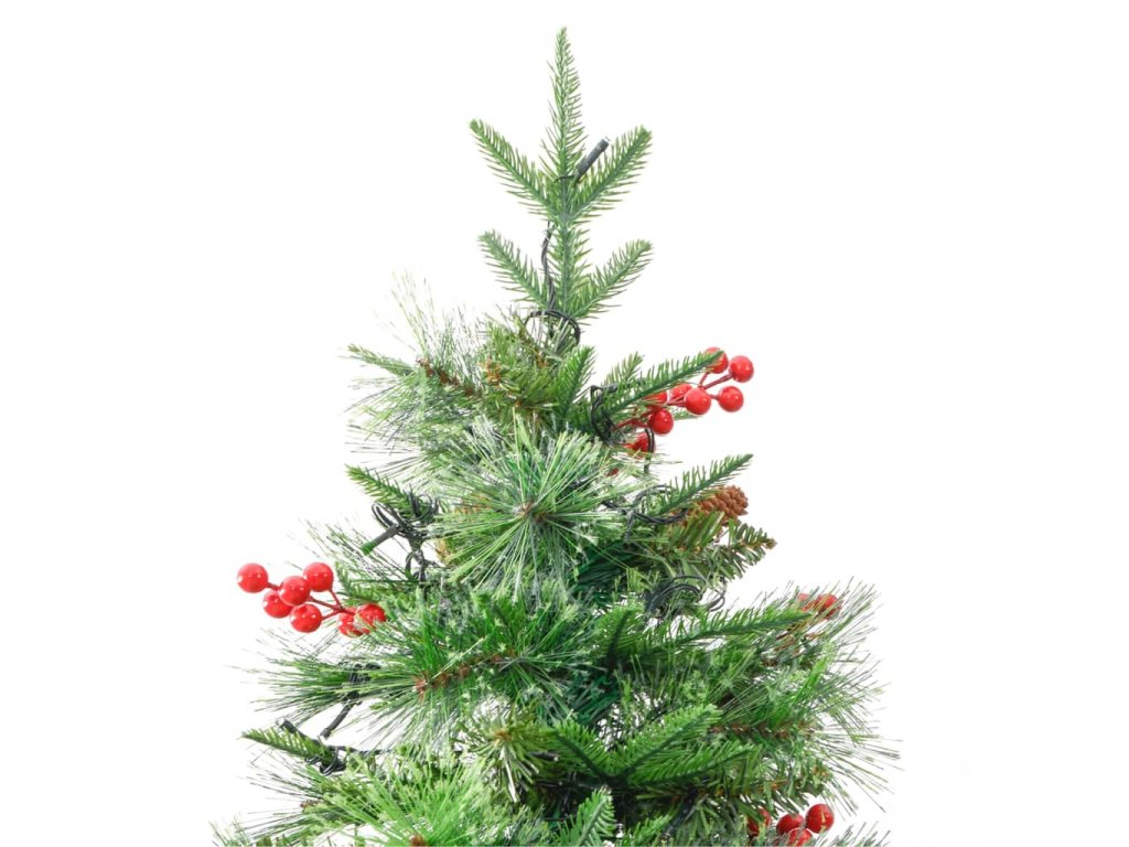 Tento krásný vánoční stromek má větve vyrobené z PVC a PE. Přiložený ocelový stojan navíc poskytuje stromku optimální stabilitu. Je vybaven energeticky úspornými LED světly, krásně svítí a vytváří útulnou vánoční atmosféru. Tento vánoční strom se šiškami a červenými bobulemi posetými jehličím oživí každý domov. Větve stromku jsou připevněny ke středovému sloupku pomocí systému pantů. Tím se větve automaticky posunou do správné polohy.