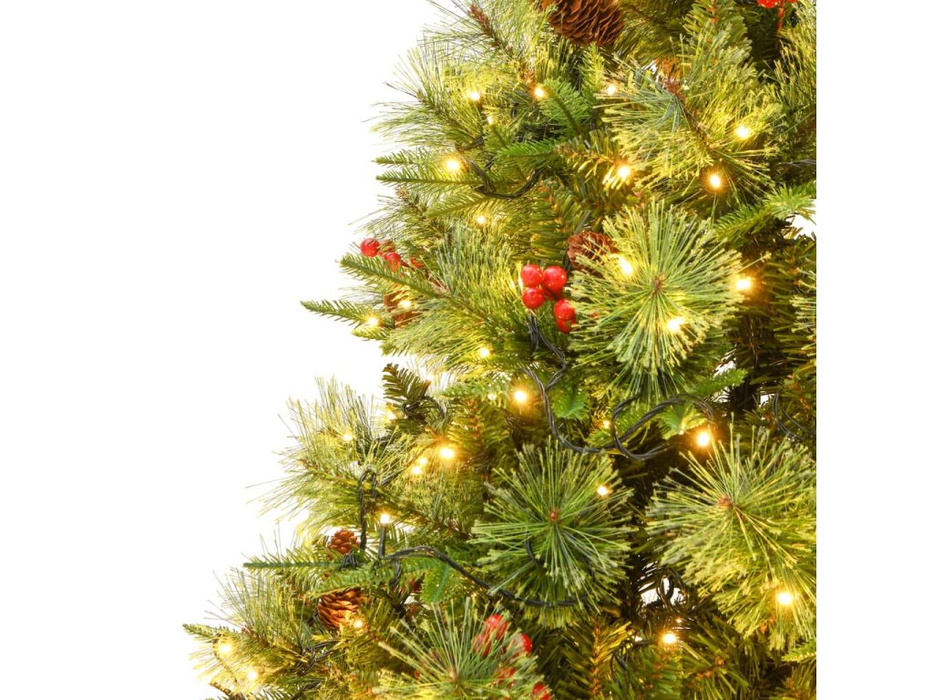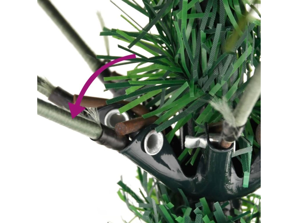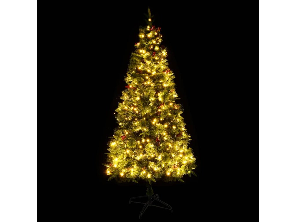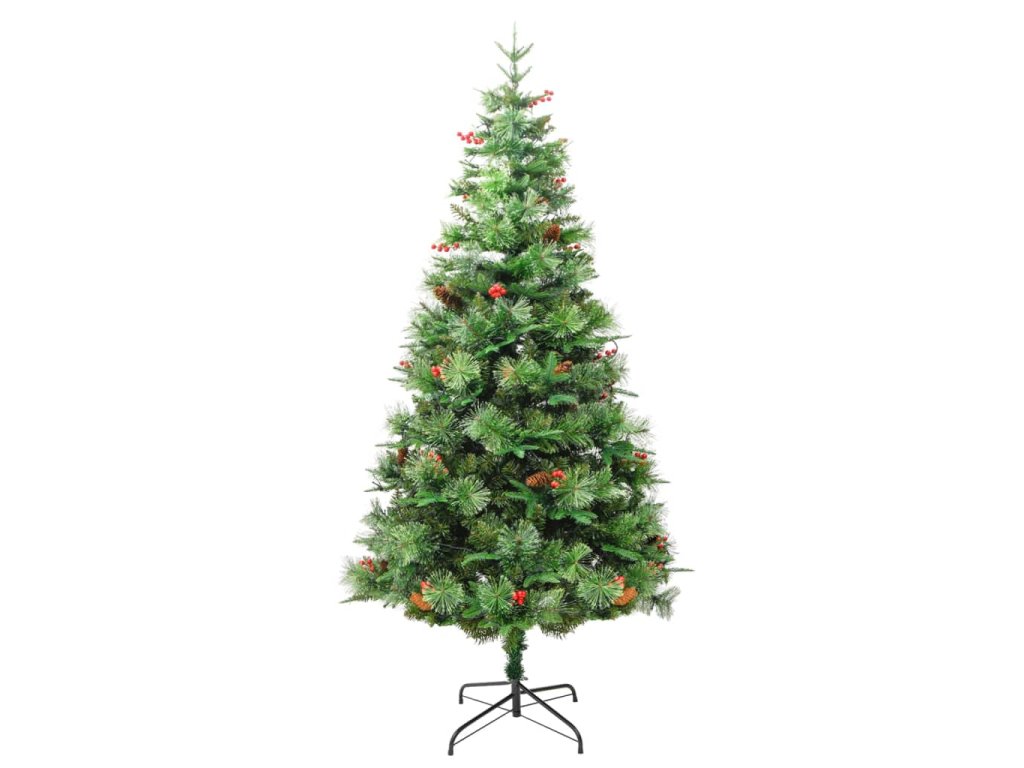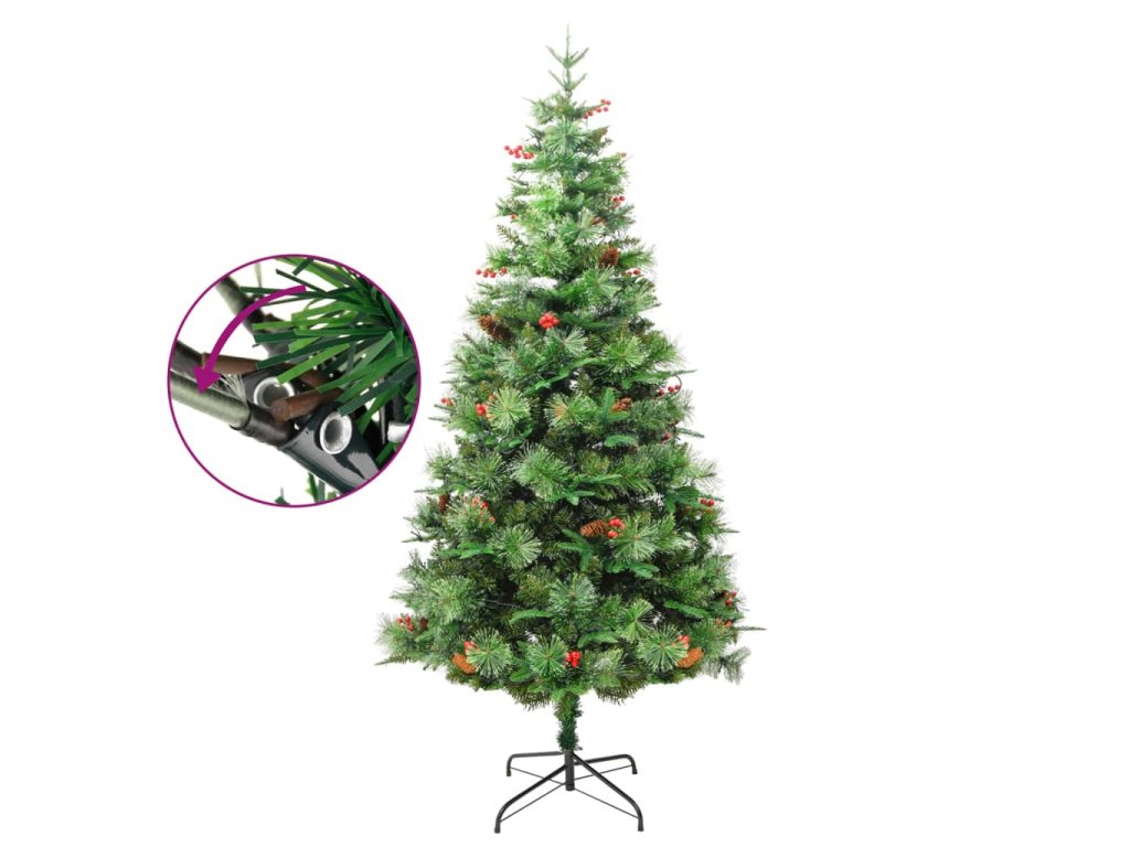 Tento krásný vánoční stromek má větve vyrobené z PVC a PE. Přiložený ocelový stojan navíc poskytuje stromku optimální stabilitu. Je vybaven energeticky úspornými LED světly, krásně svítí a vytváří útulnou vánoční atmosféru. Tento vánoční strom se šiškami a červenými bobulemi posetými jehličím oživí každý domov. Větve stromku jsou připevněny ke středovému sloupku pomocí systému pantů. Tím se větve automaticky posunou do správné polohy.