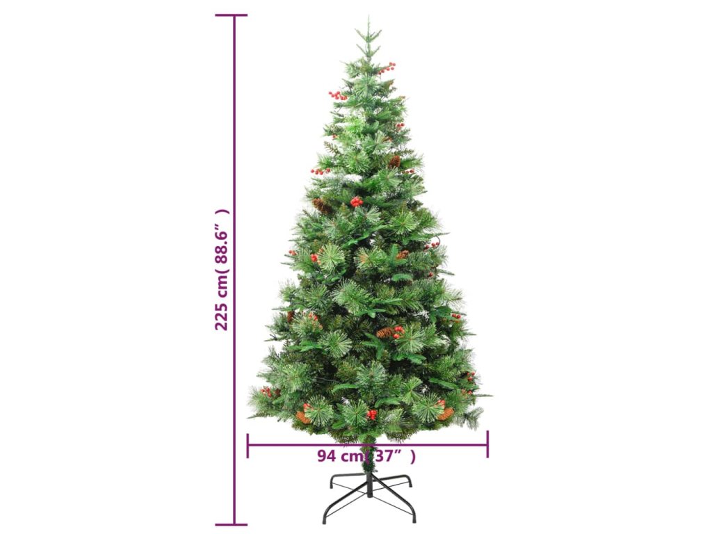 Vánoční stromek s LED a borovými šiškami zelený 225 cm PVC a PE 3094558