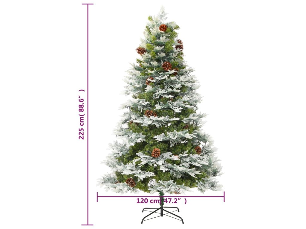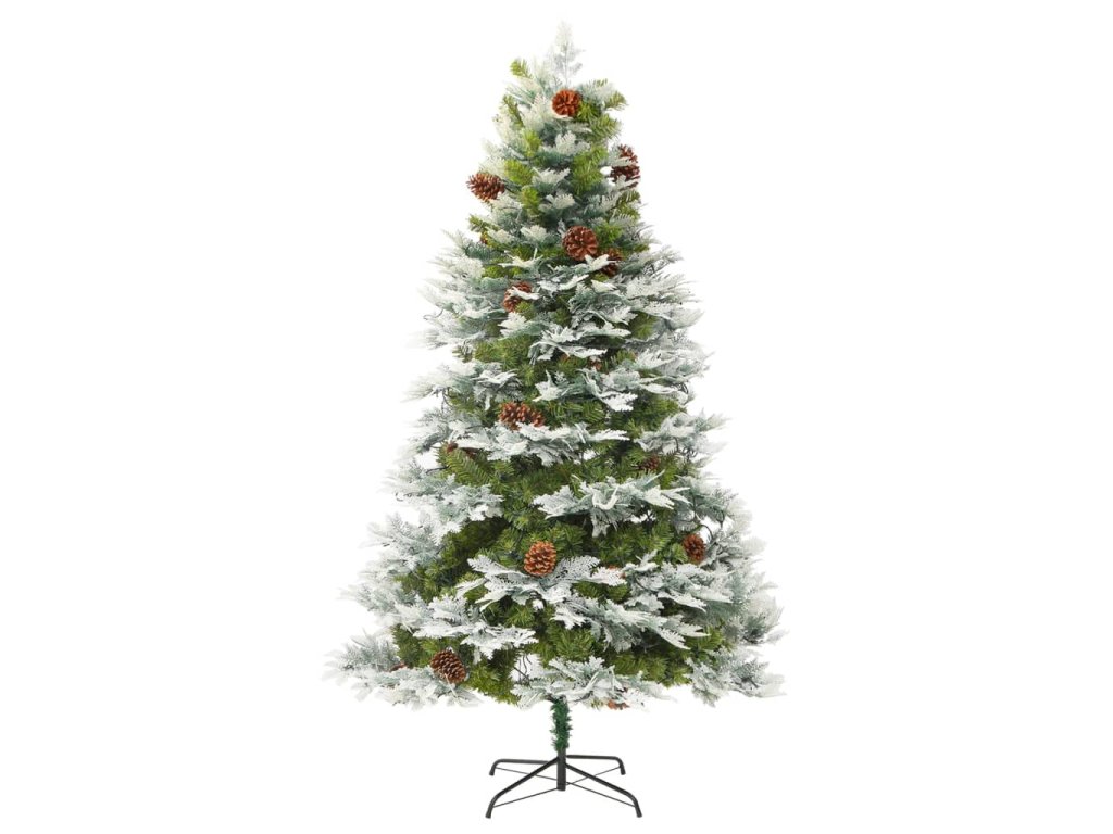 Vánoční stromek s LED a borovými šiškami zelený 225 cm PVC a PE 344298