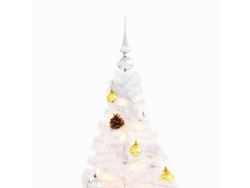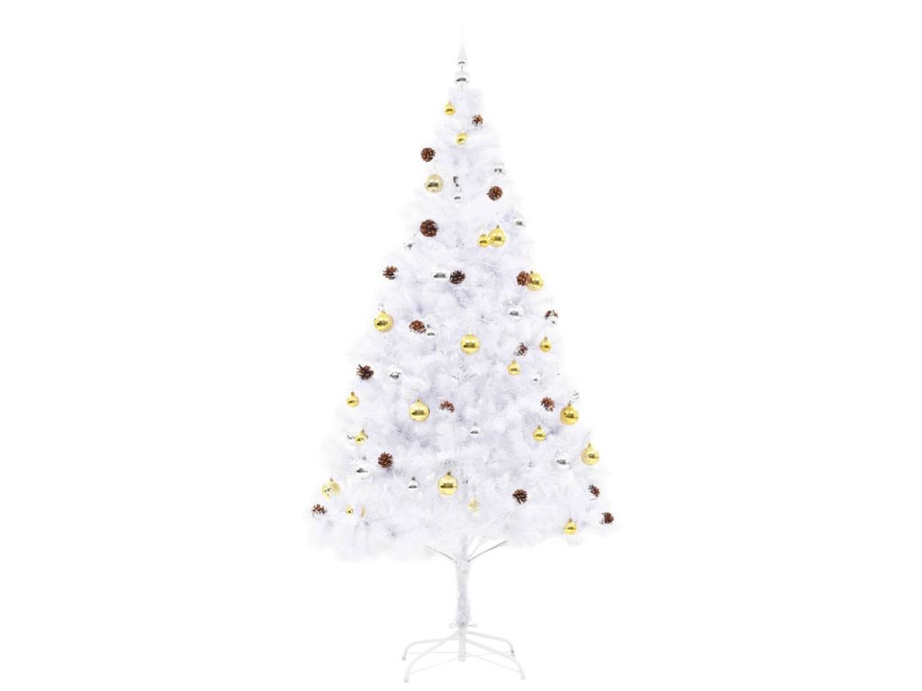 Vánoční stromek s LED osvětlením a baňkami bílý 210 cm 321504