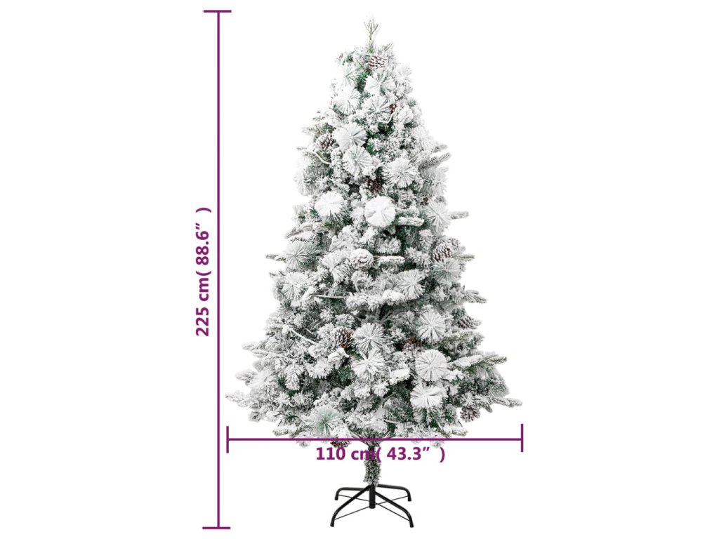 Vánoční stromek s LED zasněžený s šiškami 225 cm PVC a PE 3094562