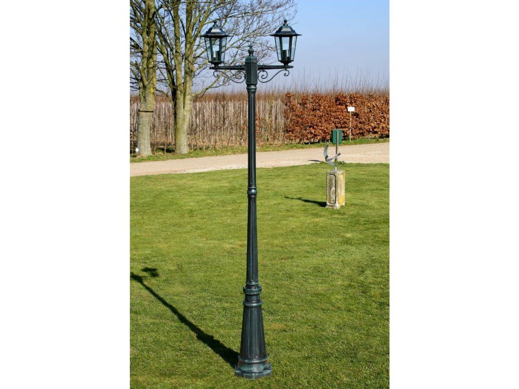 Zahradní lampa vysoká 2 ramena 215 cm tmavě zelená/černá hliník 40247