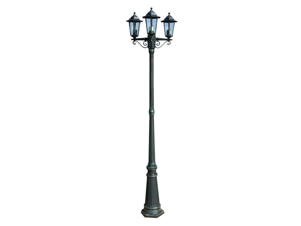 Zahradní lampa vysoká 3 ramena 215 cm tmavě zelená/černá hliník 40246