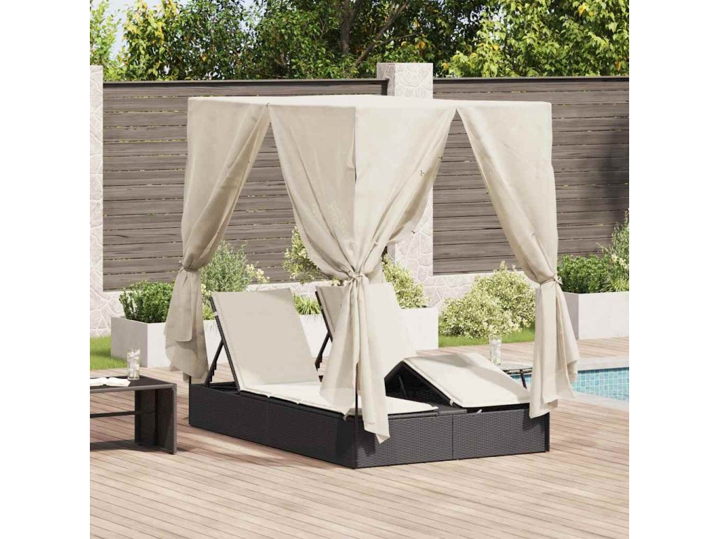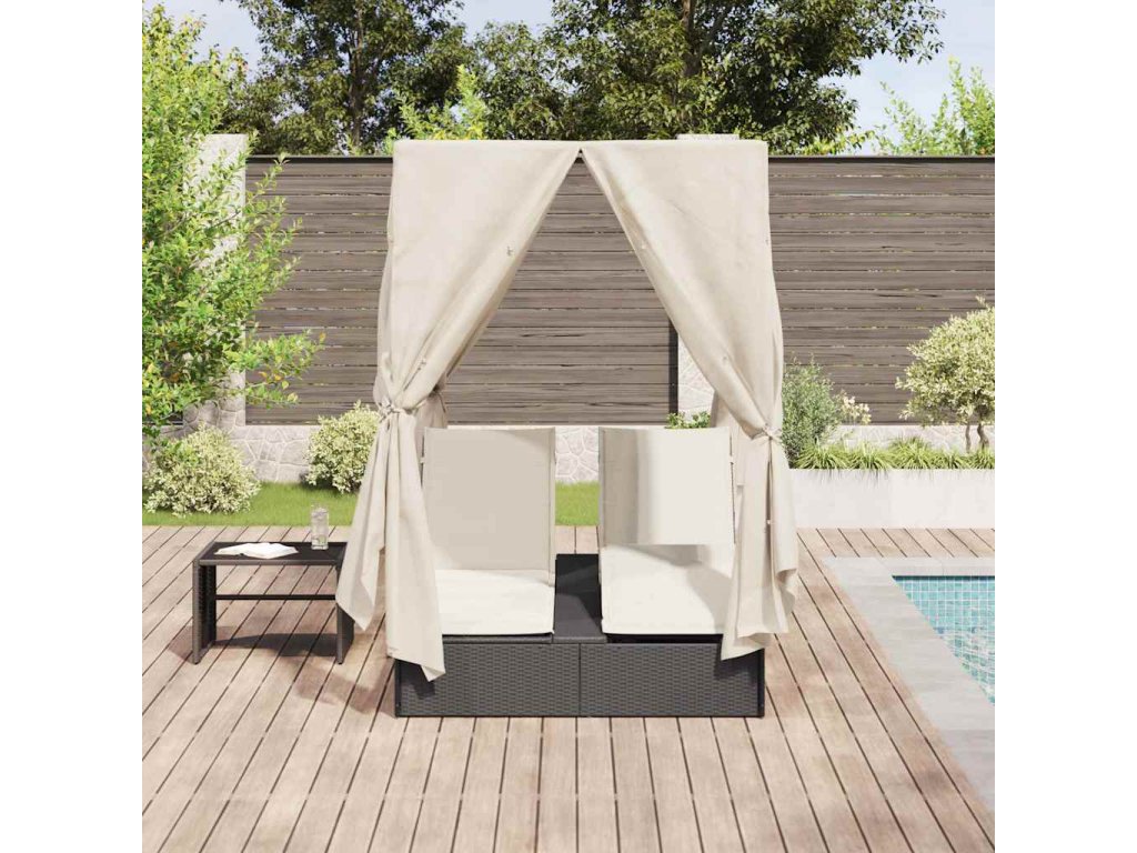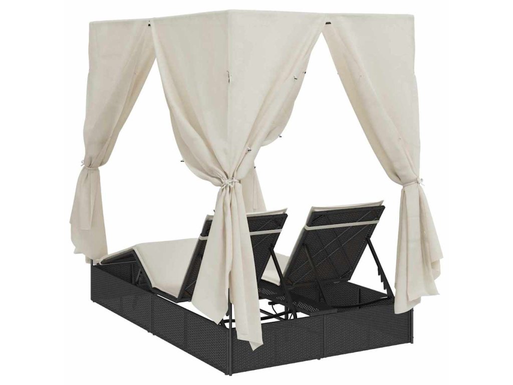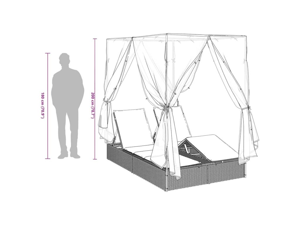 Dvojité sluneční lehátko s střechou Černá 205 x 129 x 200 cm 3376127