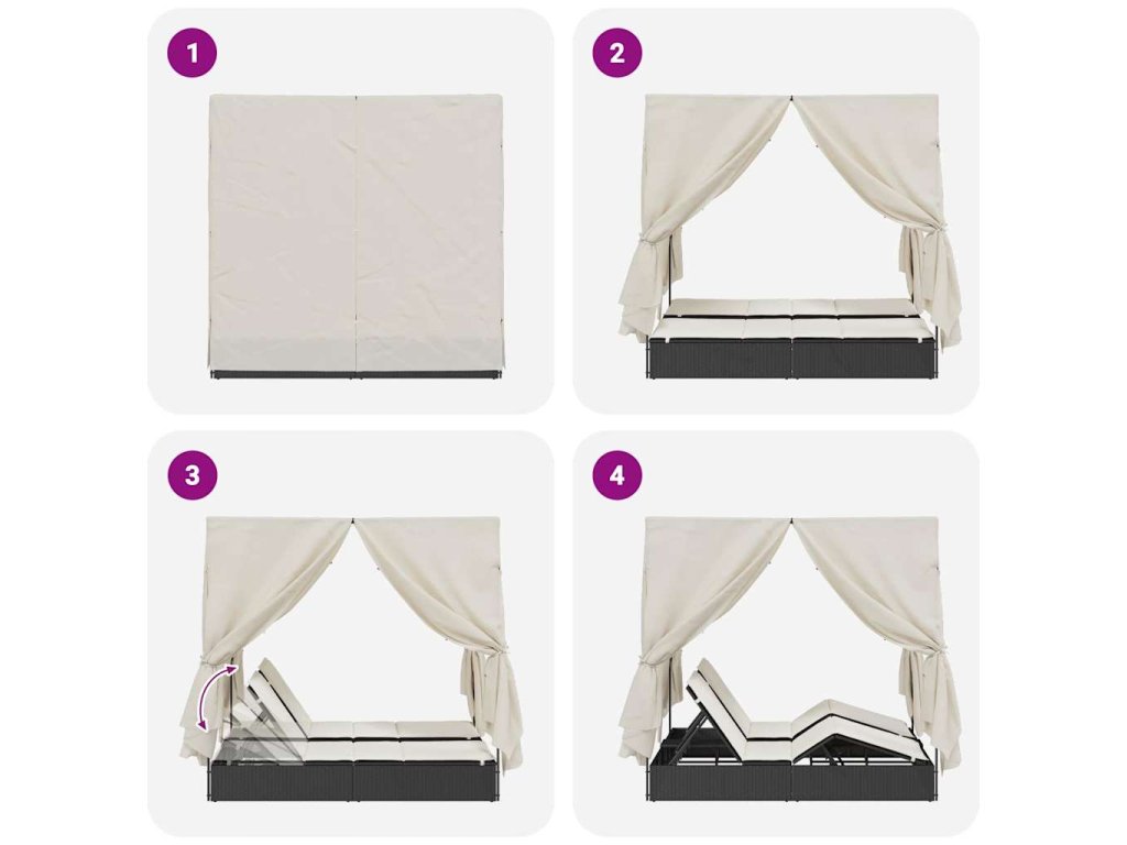 Mrkni na tohle skvělý venkovní dvojité lehátko se střechou a závěsy – je to ideální pro lenošení venku. Představ si, jak si užíváš sluneční paprsky na krásném ránu nebo se uvolňuješ v příjemném večeru, a to všechno v pohodlí a stínu díky tomuhle parádnímu lehátku. Má elegantní design a variabilní uspořádání, takže je super volba na zahrady nebo terasy, a poskytne ti skvělý zážitek venku.
