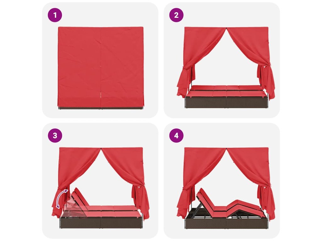 Mrkni na tohle skvělý venkovní dvojité lehátko se střechou a závěsy – je to ideální pro lenošení venku. Představ si, jak si užíváš sluneční paprsky na krásném ránu nebo se uvolňuješ v příjemném večeru, a to všechno v pohodlí a stínu díky tomuhle parádnímu lehátku. Má elegantní design a variabilní uspořádání, takže je super volba na zahrady nebo terasy, a poskytne ti skvělý zážitek venku.