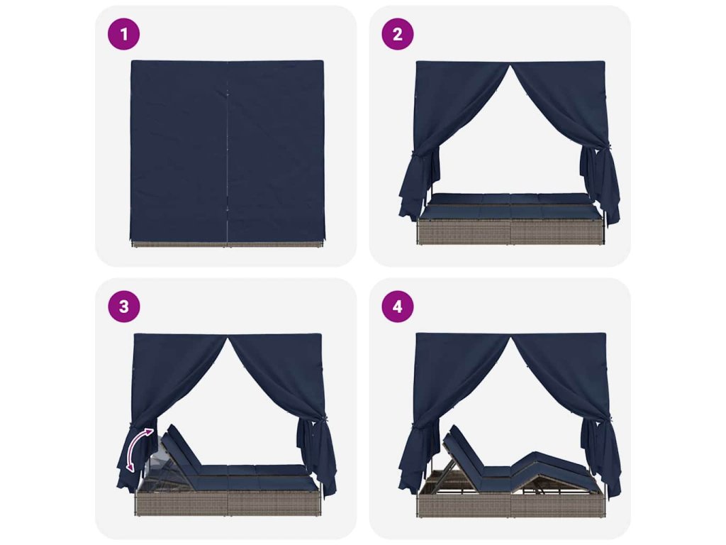 Mrkni na tohle skvělý venkovní dvojité lehátko se střechou a závěsy – je to ideální pro lenošení venku. Představ si, jak si užíváš sluneční paprsky na krásném ránu nebo se uvolňuješ v příjemném večeru, a to všechno v pohodlí a stínu díky tomuhle parádnímu lehátku. Má elegantní design a variabilní uspořádání, takže je super volba na zahrady nebo terasy, a poskytne ti skvělý zážitek venku.