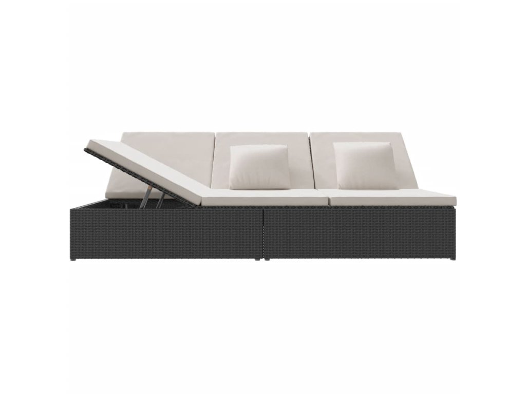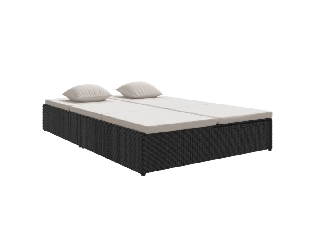 Rozkládací opalovací lehátko s poduškami polyratan černé 317238