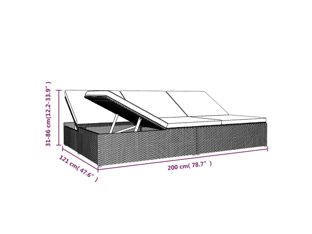 Toto polyratanové lehátko/pohovka 2 v 1 je dokonalou kombinací stylu a funkčnosti. Je ideální pro relaxaci u bazénu, na balkóně, na terase nebo v kempu během dovolené nebo ve volném čase.