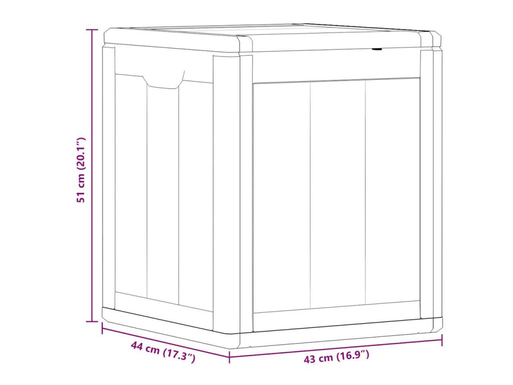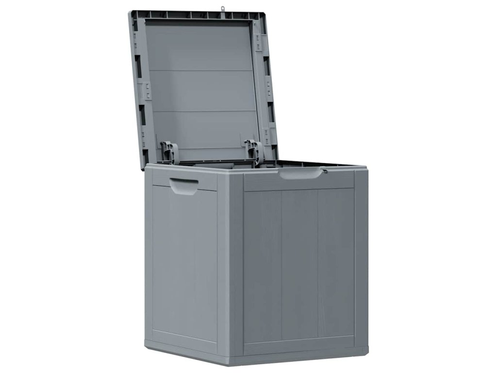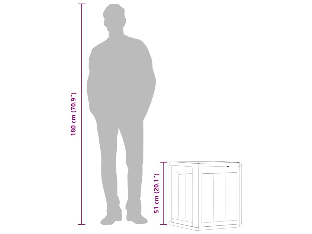 Úložná truhla je vyrobena ze 100% PP materiálu, takže je odolná vůči povětrnostním vlivům, UV záření, je lehká a snadno se přenáší. Zahradní úložný box se vyznačuje decentním, ale nadčasovým designem a dokonale zapadne do vašeho interiéru i exteriéru. Nabízí dostatek úložného prostoru pro podušky, polštáře a další domácí nebo zahradní potřeby, které chcete mít po ruce.