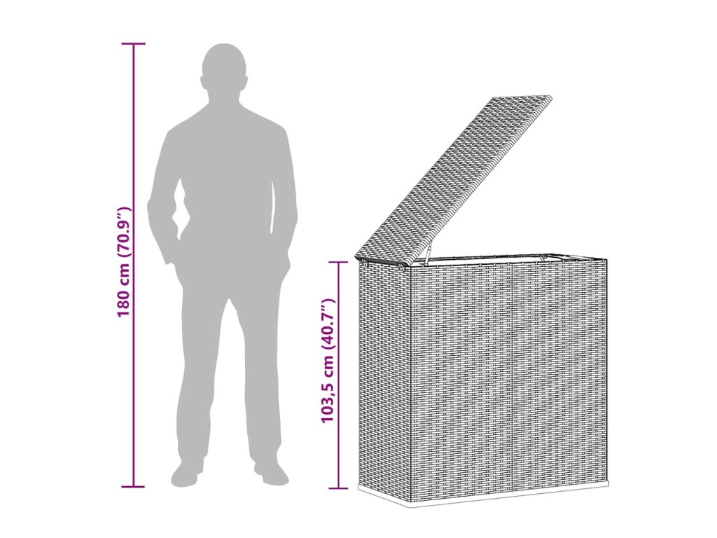 Tento jednoduchý zahradní box na podušky z PE ratanu je ideální volbou pro uložení podušek, polštářů, přikrývek, ručníků, domácích drobností a mnoha dalšího.