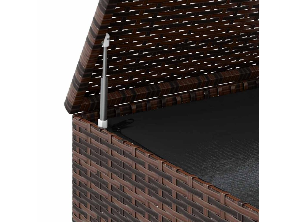 Tento zahradní úložný box má robustní ocelový rám s práškovým nástřikem, který se vyznačuje vysokou odolností. Úložná truhla je zhotovena z PE ratanu odolného vůči povětrnostním vlivům, snadno se tedy čistí a je vhodná pro venkovní i vnitřní použití. Vnitřní voděodolný vak z PE s krytem a zipem chrání vaše věci před vlhkostí. Box na podušky je navíc vybaven mechanismem s plynovým pístem, který usnadňuje otevírání a zavírání a chrání prsty a ruce před nechtěným přivřením.