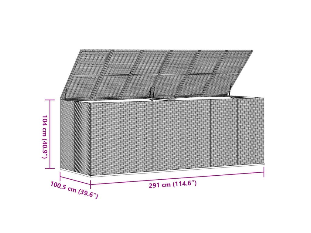 Zahradní úložný box PE ratan 291 x 100,5 x 104 cm šedý 317237