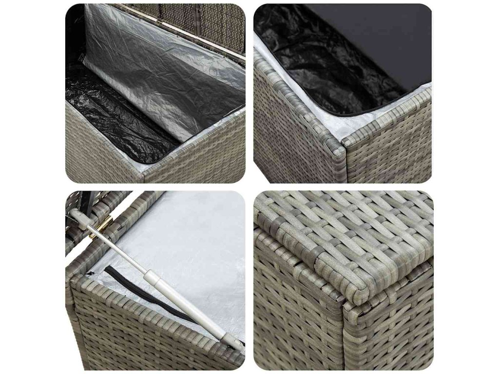 - Spousta úložného prostoru: Je navržen s prostornou truhlou, takže je dostatečně velký pro uložení předmětů na vaší zahradě, jako jsou podušky na nábytek, polštáře, další přikrývky a zahradnické potřeby.
