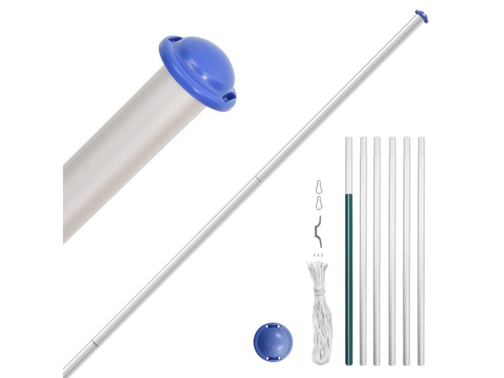 - Snadné ovládání: Vzhledem k jednoduchému zásuvnému systému lze stožár postavit během chvilky. Pomocí přiloženého lana a kroužků můžete vlajku bez problémů posouvat nahoru a dolů.