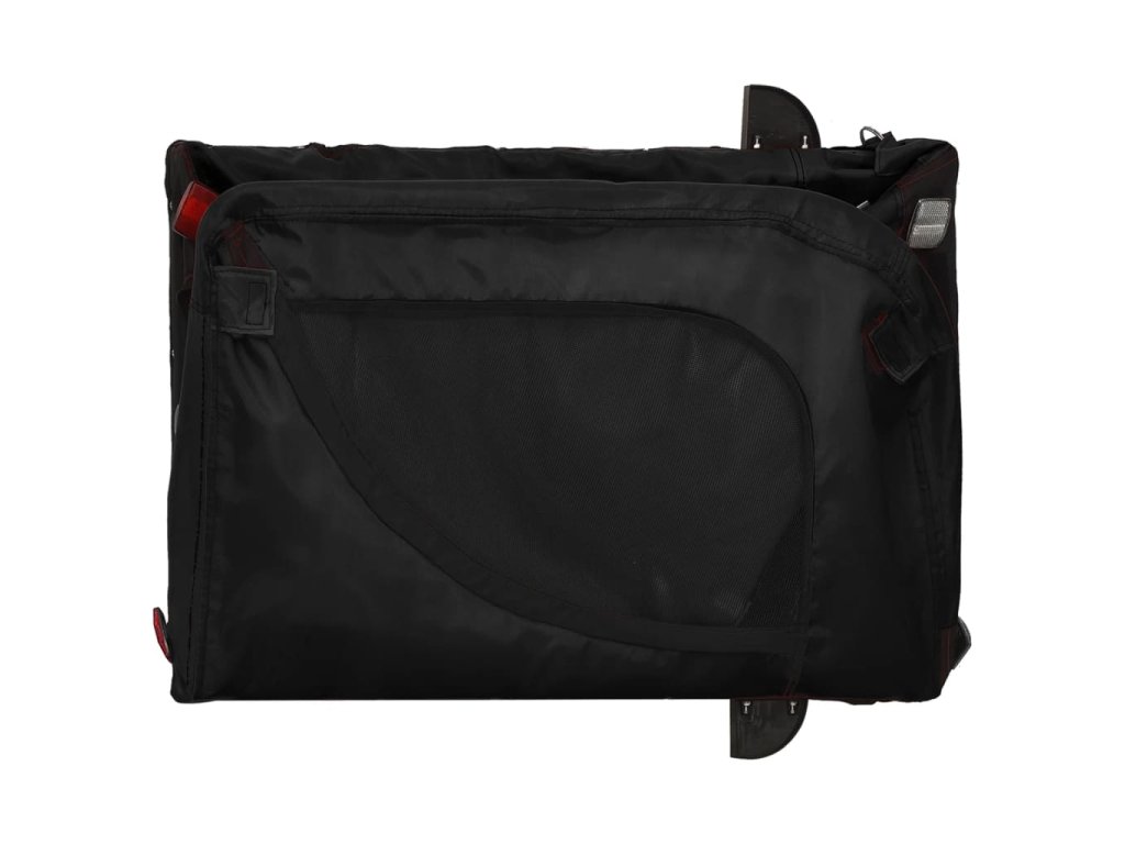 - Praktický přívěs za kolo: Tento vozík za kolo je vyroben z oxfordské tkaniny a je vybaven PVC krytem, který chrání vašeho domácího mazlíčka před mrholením. Dno vozíku tvoří černá nosná deska, vytvářející pohodlný prostor.