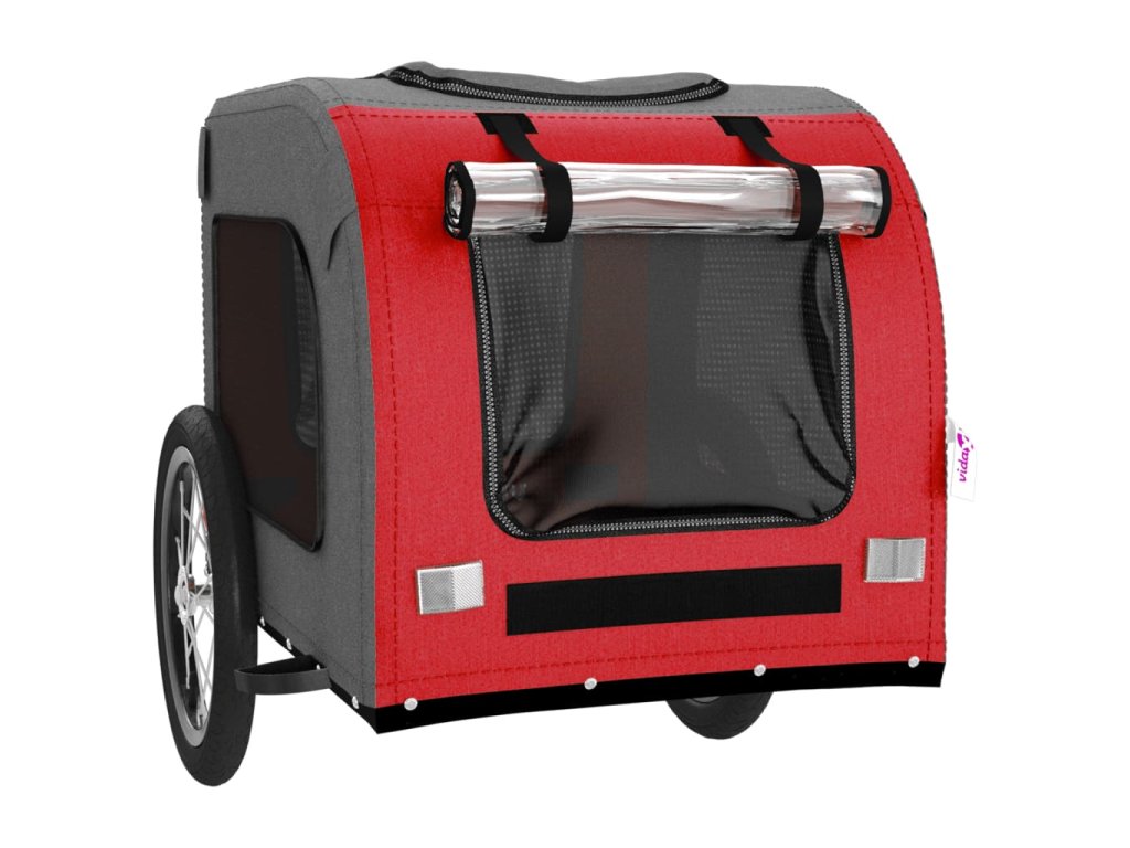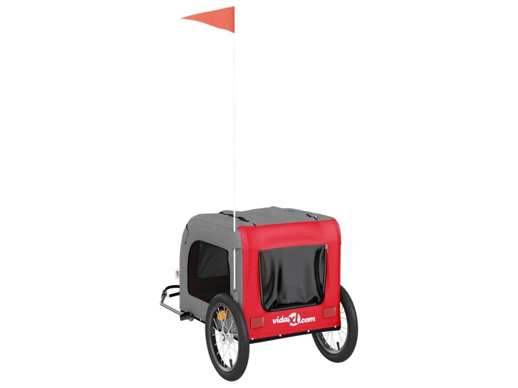 Vozík za kolo pro psa červený a šedý oxfordská tkanina/železo 93831