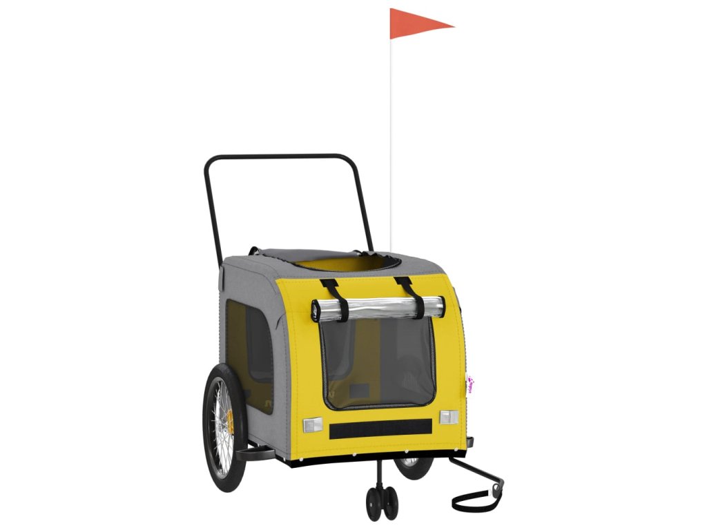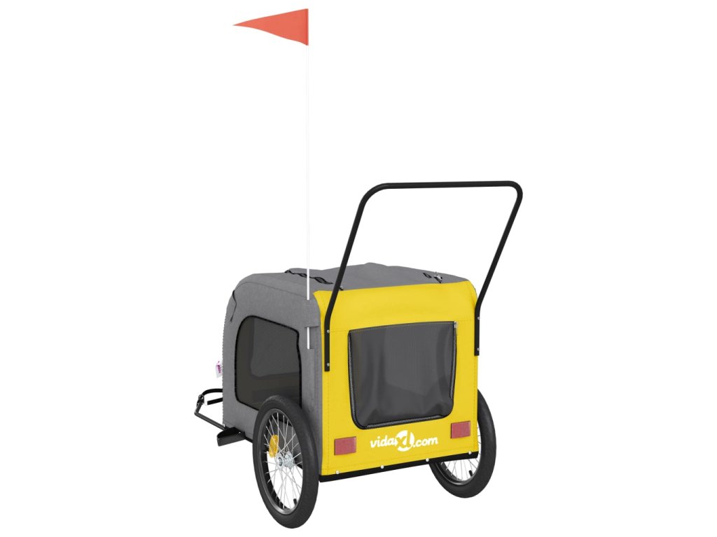 Vozík za kolo pro psa žlutý a šedý oxfordská tkanina a železo 93861