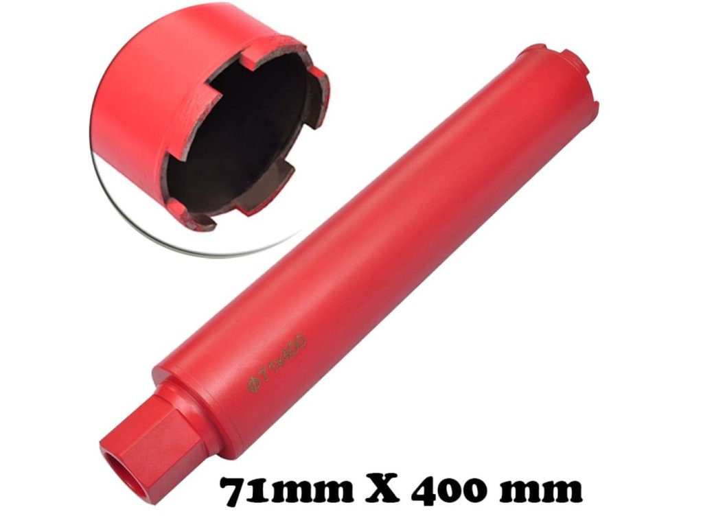 Náš velmi kvalitní a robustní 71 x 400 mm jádrový vrták do elektrických jádrových vrtaček je vhodný na vrtání žuly, tvrdého kamene, betonu, zpevněných betonových povrchů a jiných pevných materiálů. Jeho odolná konstrukce zajistí bezproblémový chod vrtáků. Nabízíme také vrtáky jiných velikostí, které vyhovují různým potřebám vrtání.
