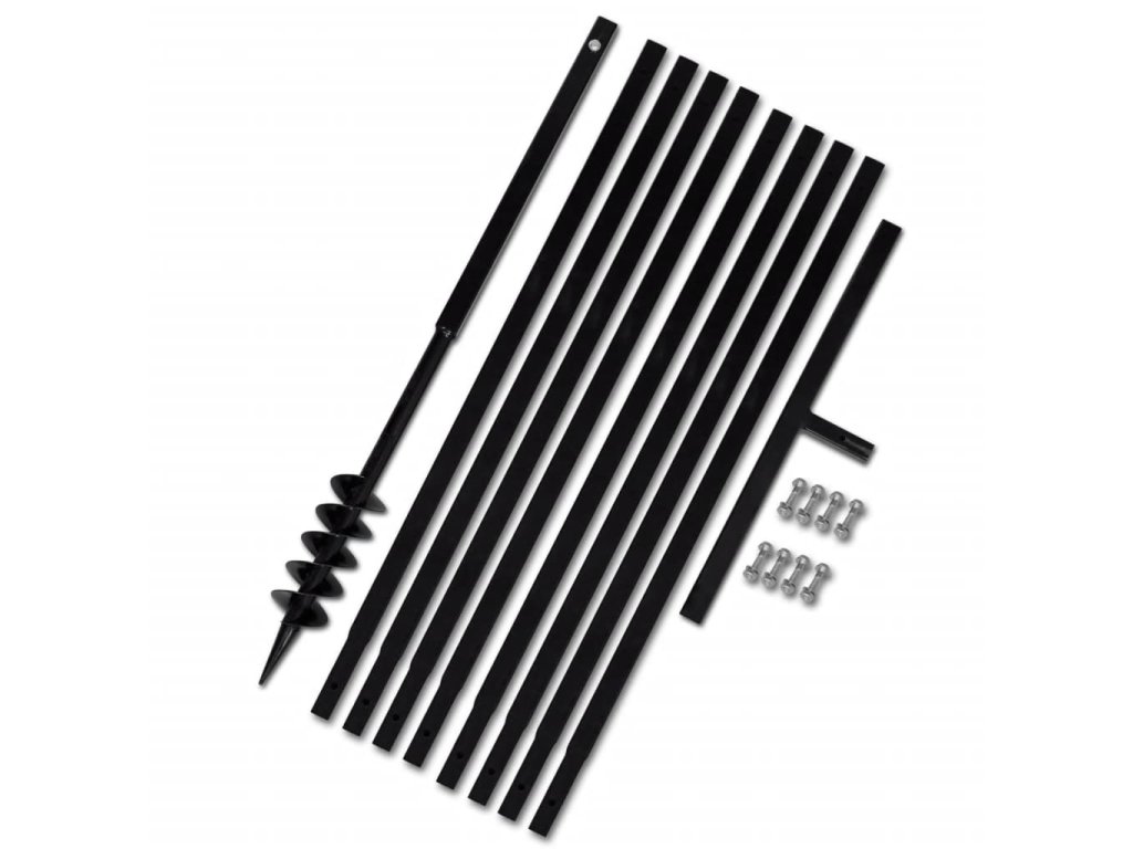 - Balení obsahuje zemní vrták, rukojeť, 8 ks prodlužovacích nástavců a šrouby