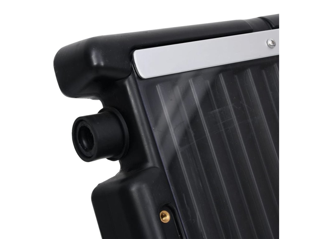 Ohřevný systém je vyrobený z vysoce kvalitních materiálů, které výborně vzdorují častému vystavení slunci a povětrnostním podmínkám. Nastavitelné nohy drží panel v úhlu 40°–60° za účelem maximalizace zachycení sluneční energie, což také znamená vyšší účinnost ohřevu. Zároveň poskytují flexibilitu při umístění panelu.