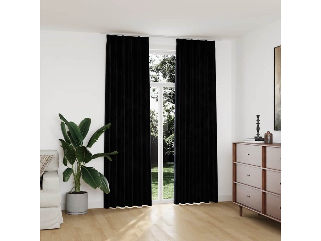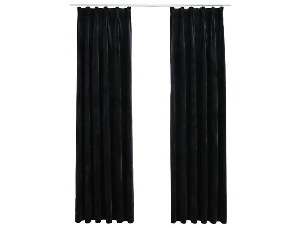 Zatemňovací závěsy s háčky 2 ks sametové černé 140 x 245 cm 134494