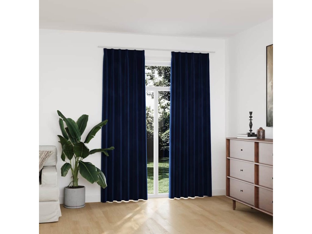 Zatemňovací závěsy s háčky 2 ks sametové tmavě modré 140x225 cm 134533