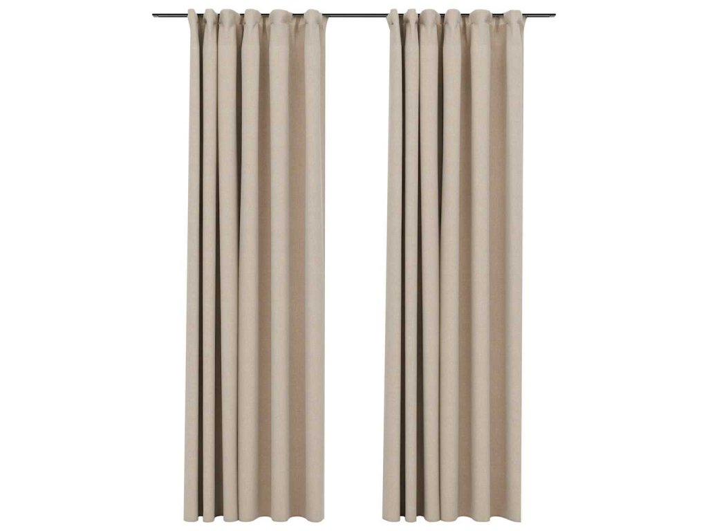 Zatemňovací závěsy s háčky vzhled lnu 2 ks béžové 140 x 225 cm 321213