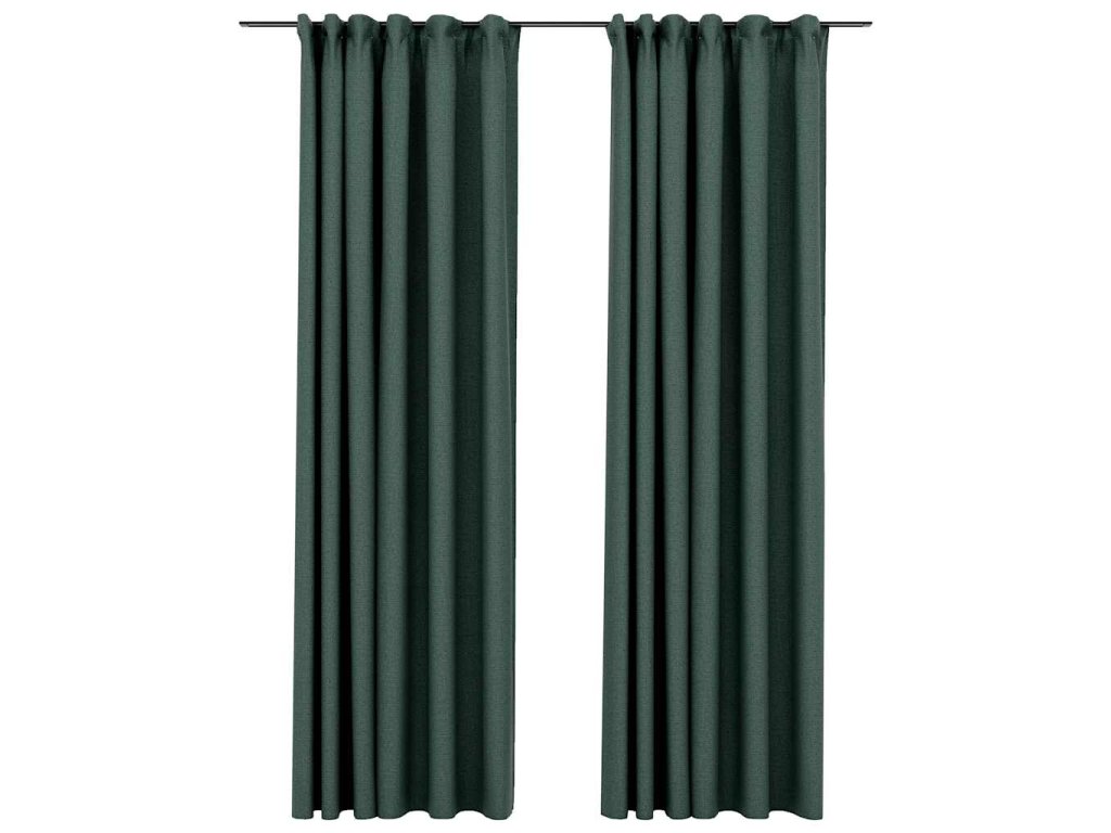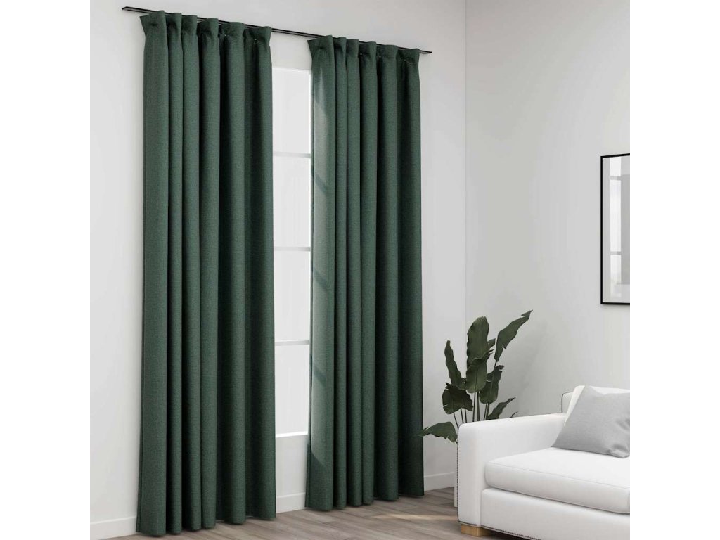 Zatemňovací závěsy s háčky vzhled lnu 2 ks zelené 140 x 245 cm 321190