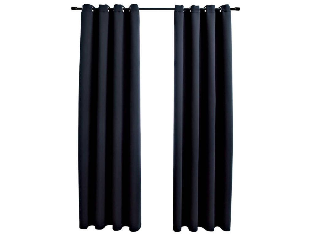 Zatemňovací závěsy s kroužky 2 ks černé 137 x 213 cm látkové 134838