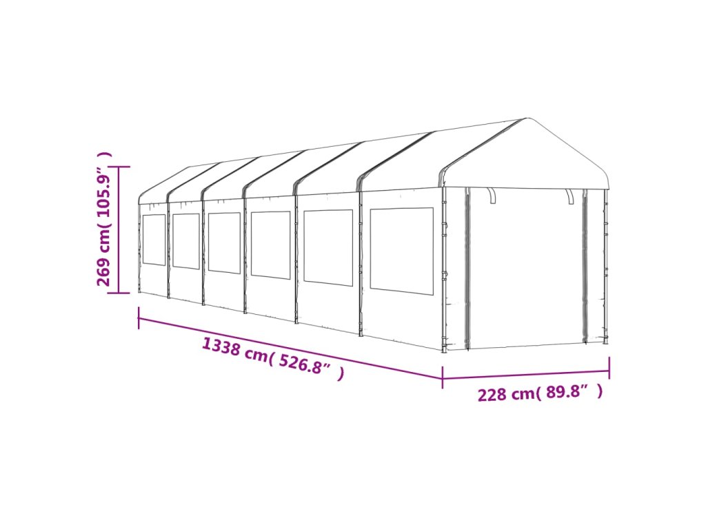 Altán se střechou bílý 13,38 x 2,28 x 2,69 m polyethylen 3155482