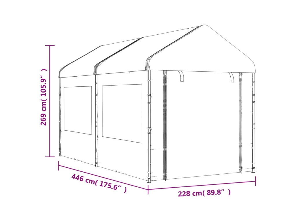 Altán se střechou bílý 4,46 x 2,28 x 2,69 m polyethylen 3155478
