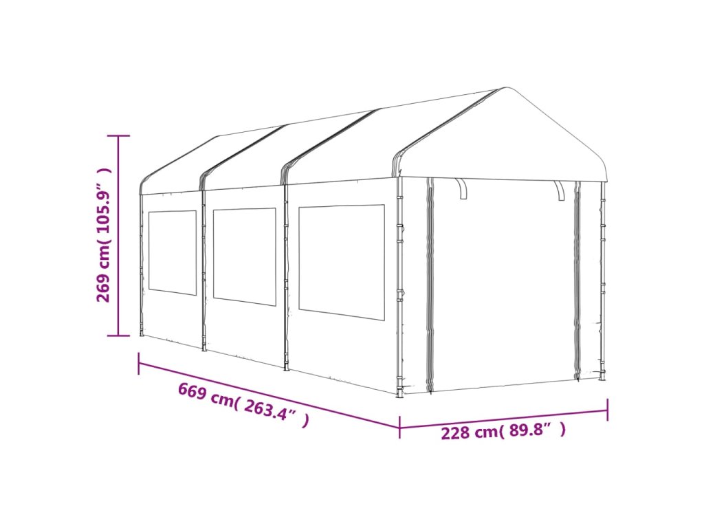 Altán se střechou bílý 6,69 x 2,28 x 2,69 m polyethylen 3155479
