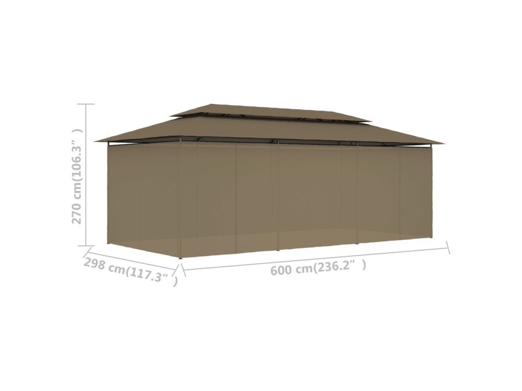 Altán se závěsy 600 x 298 x 270 cm taupe 180 g/m² 312247