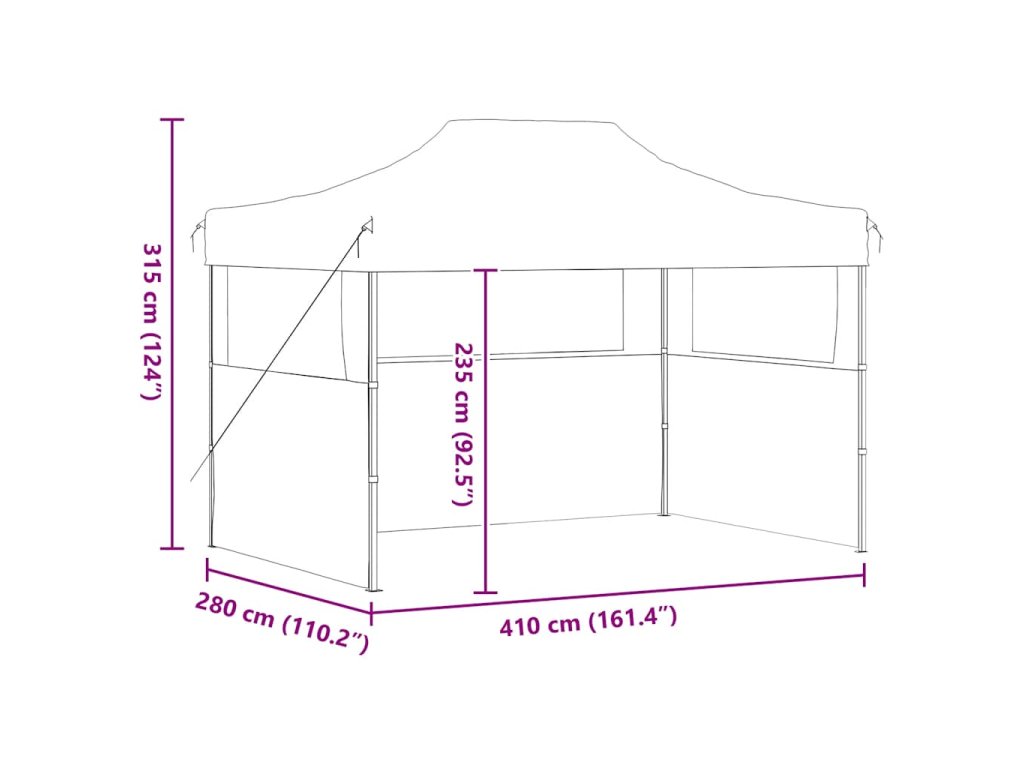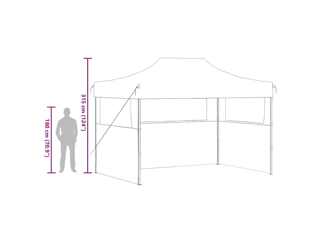 Venkovní stříška má střechu odolnou vůči UV záření a vodě, která je vyrobena z oxfordské tkaniny 600D s PVC povlakem, a proto je ideální pro venkovní použití. Párty stan je navržen se 3 bočními stěnami s průhlednými okny pro zajištění plné ochrany. Rám je vyroben z oceli s práškovým nástřikem odolné proti korozi, díky čemuž je zahradní stan stabilní a odolný. Rozkládací párty stan je skládací pro snadné skladování a přepravu. Snadno se montuje.