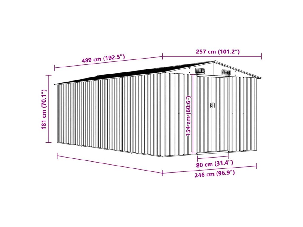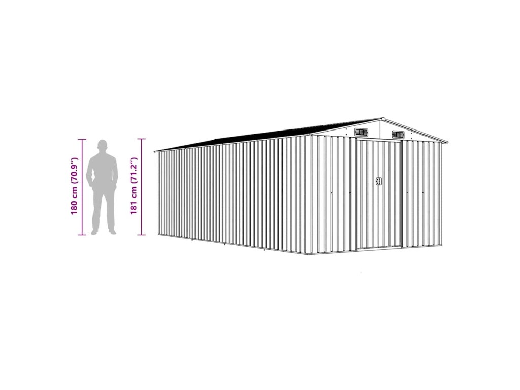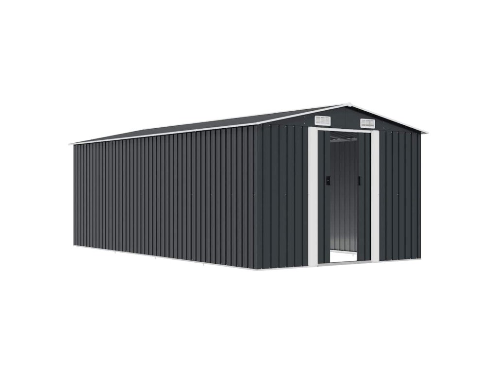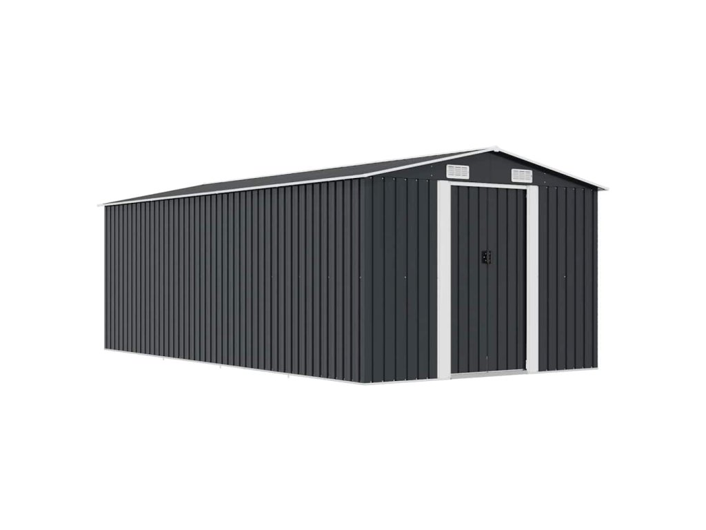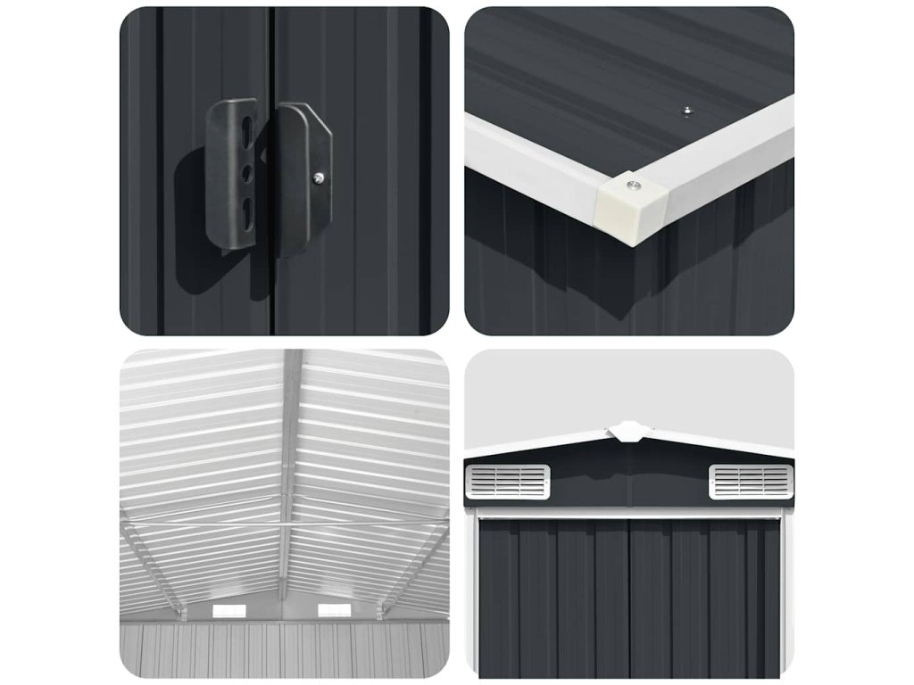 Tento úložný přístřešek má větrací otvory v přední i zadní části, které zajišťují vynikající ventilaci. Dvojité posuvné dveře v přední části umožňují snadný vstup a výstup. Konstrukce z pozinkované oceli spolu s práškovým nástřikem zaručují pevnost a odolnost kůlny na nářadí.