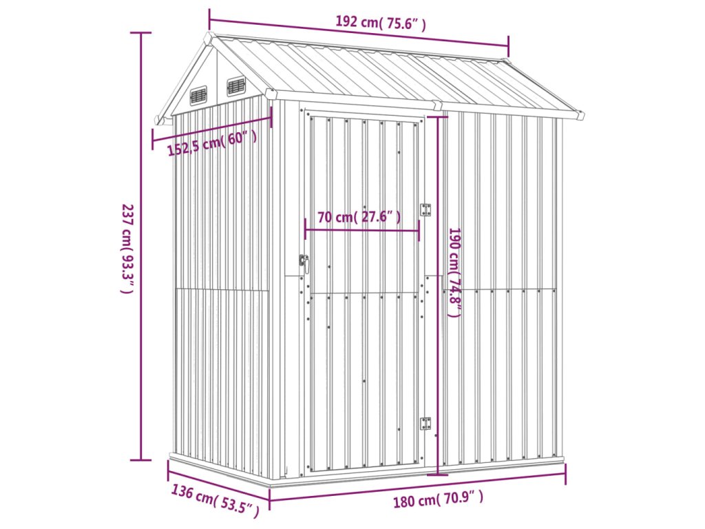 Zahradní domek antracitový 192 x 152,5 x 237 cm pozinkovaná ocel 364531