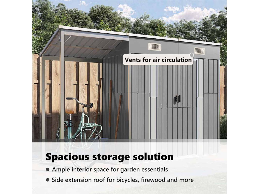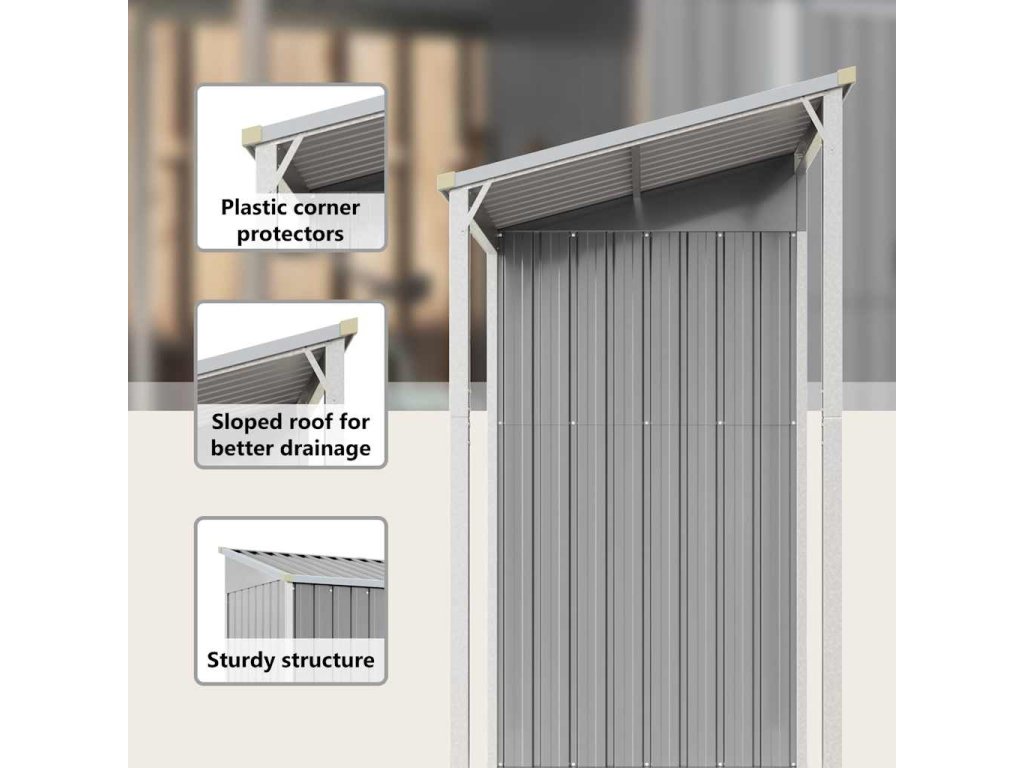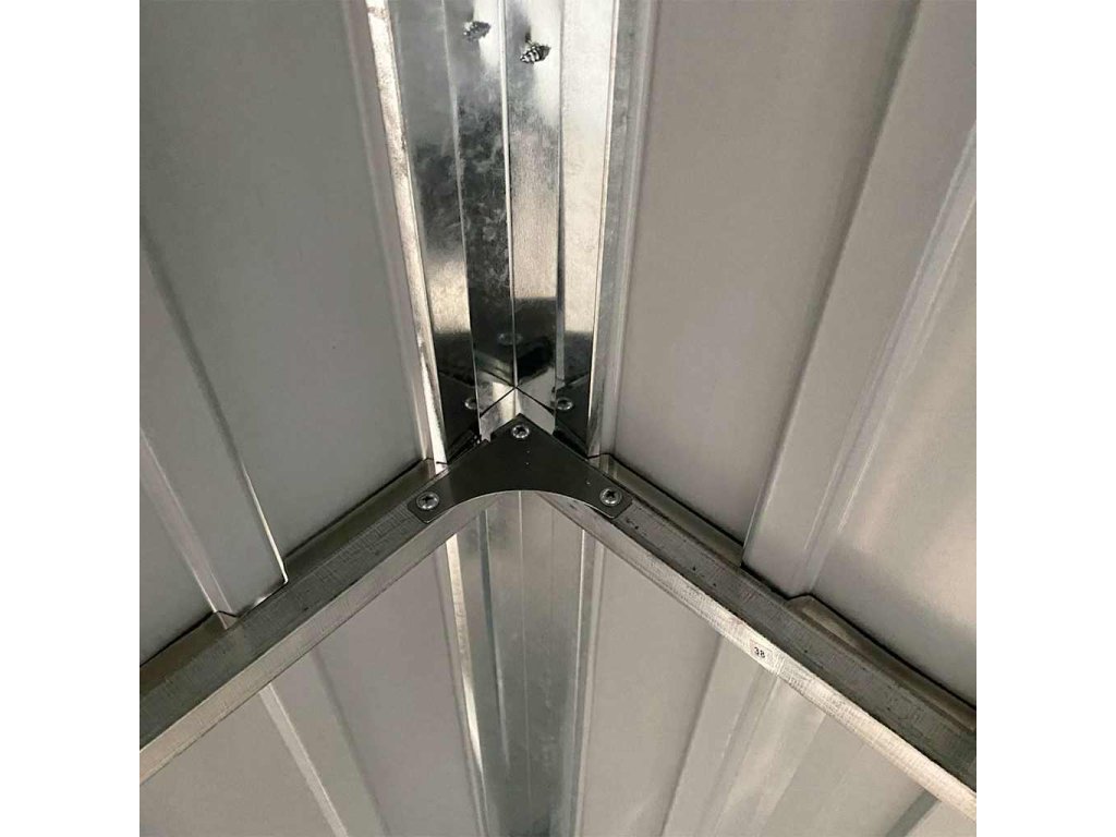 - Dostatek úložného prostoru: Tento kovový domek nabízí dostatek prostoru pro uložení palivového dřeva, zahradního nářadí, nábytku, vybavení a dalších věcí. Má také prodlouženou střechu pro uložení palivového dřeva. Střechu lze upevnit na obě strany kůlny.
