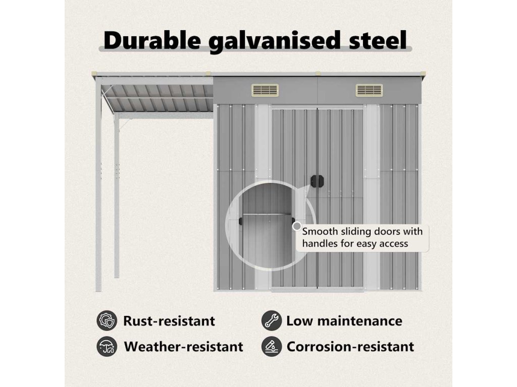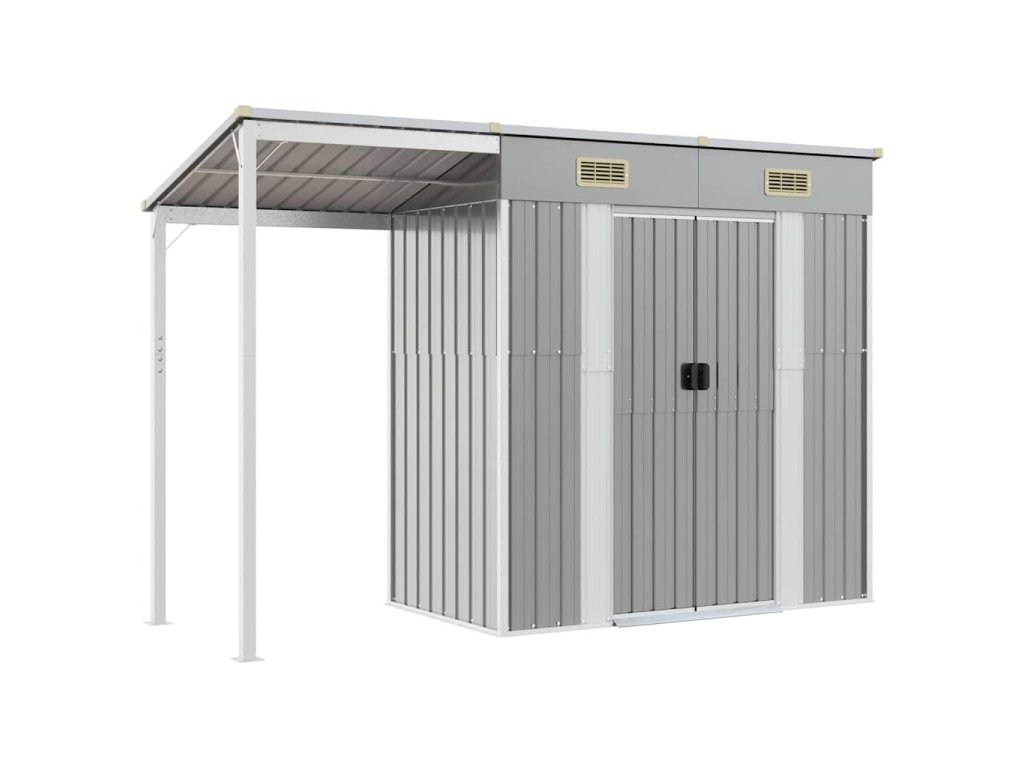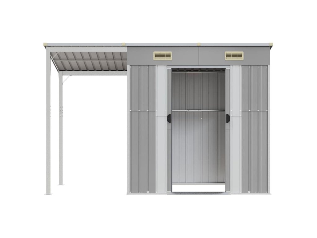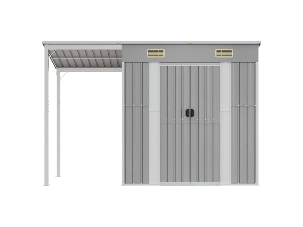 Zahradní domek s prodlouženou střechou světle šedý 277 x 107 x 181 cm ocelový 364525
