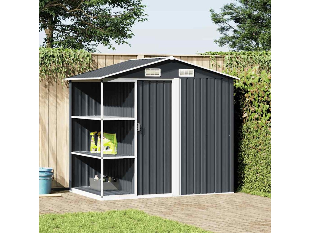 Zahradní domek s regálem antracitový 205 x 130 x 183 cm železo 47106