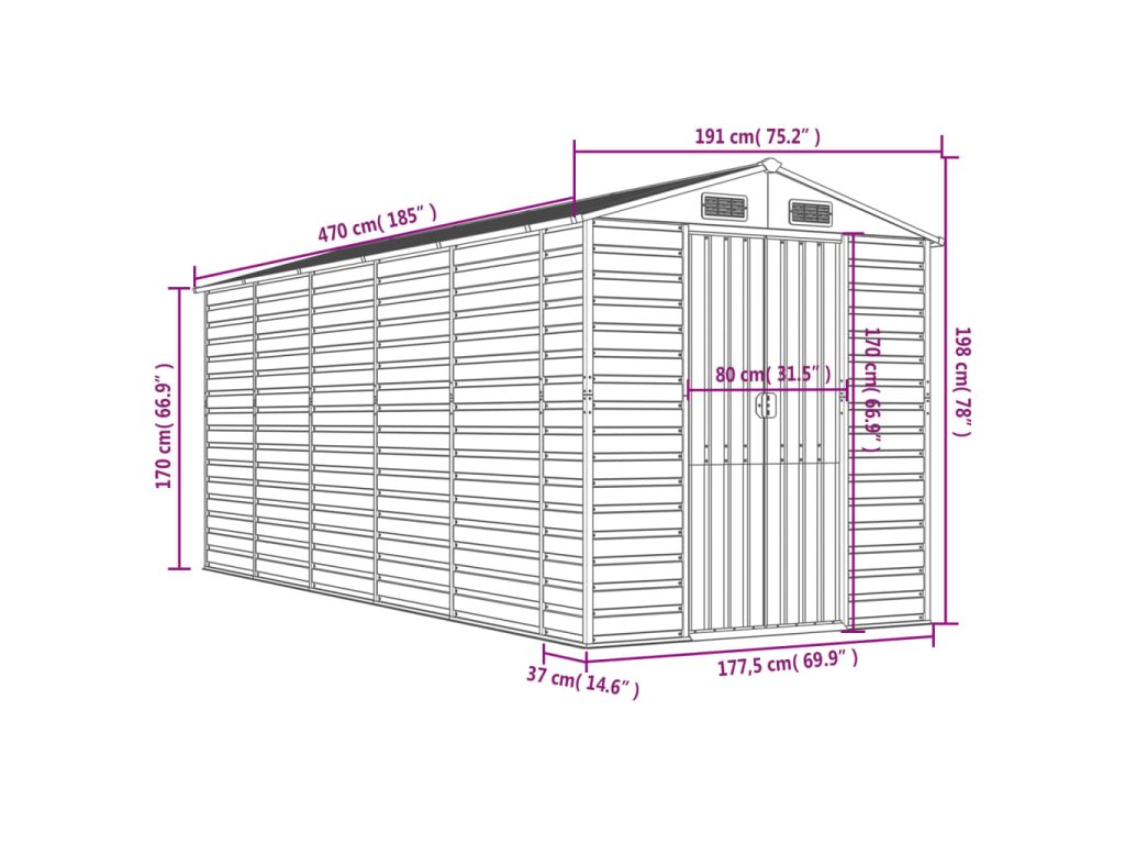 Zahradní domek světle šedý 191 x 470 x 198 cm pozinkovaná ocel 3188246