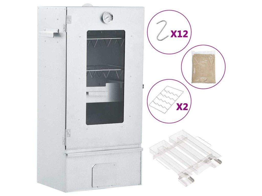 - Indikativní funkce: Udírna je vybavena teploměrem pro kontrolu teploty v komoře. Skrz skleněné okno udírny můžete sledovat pokrm uvnitř a zajistit tak co nejlepší přípravu.