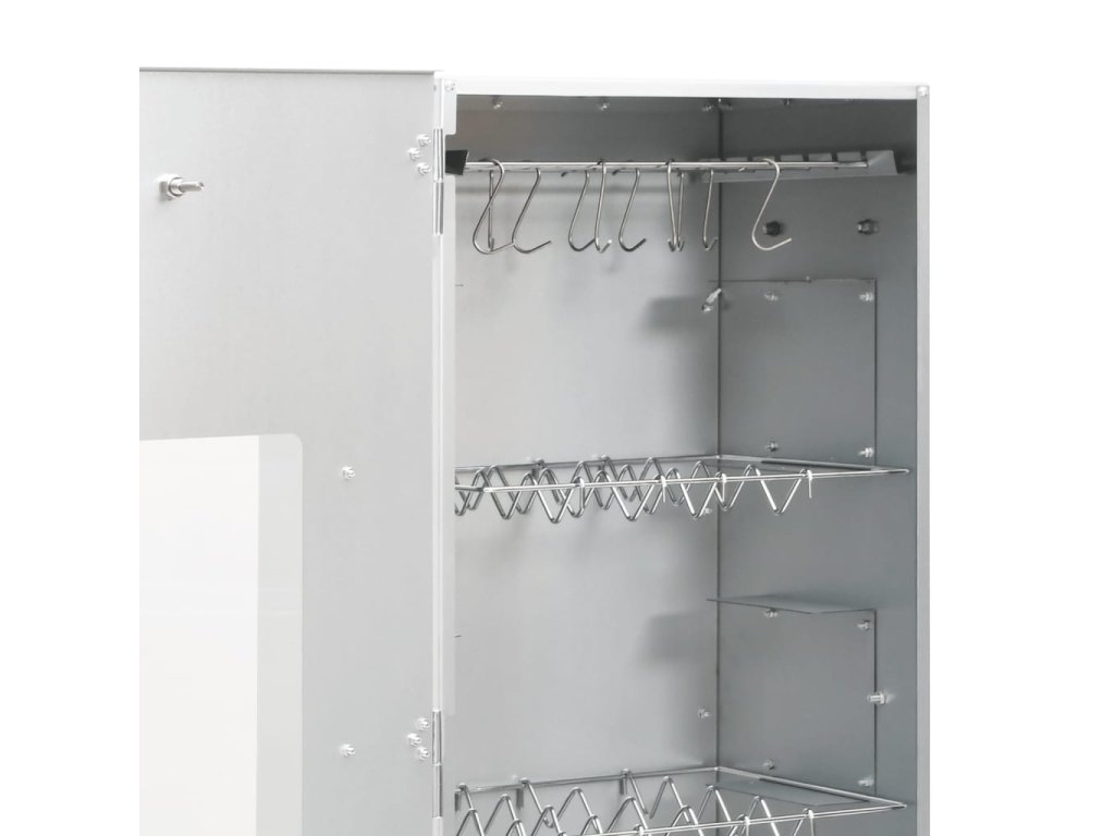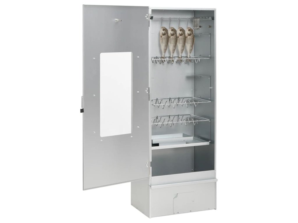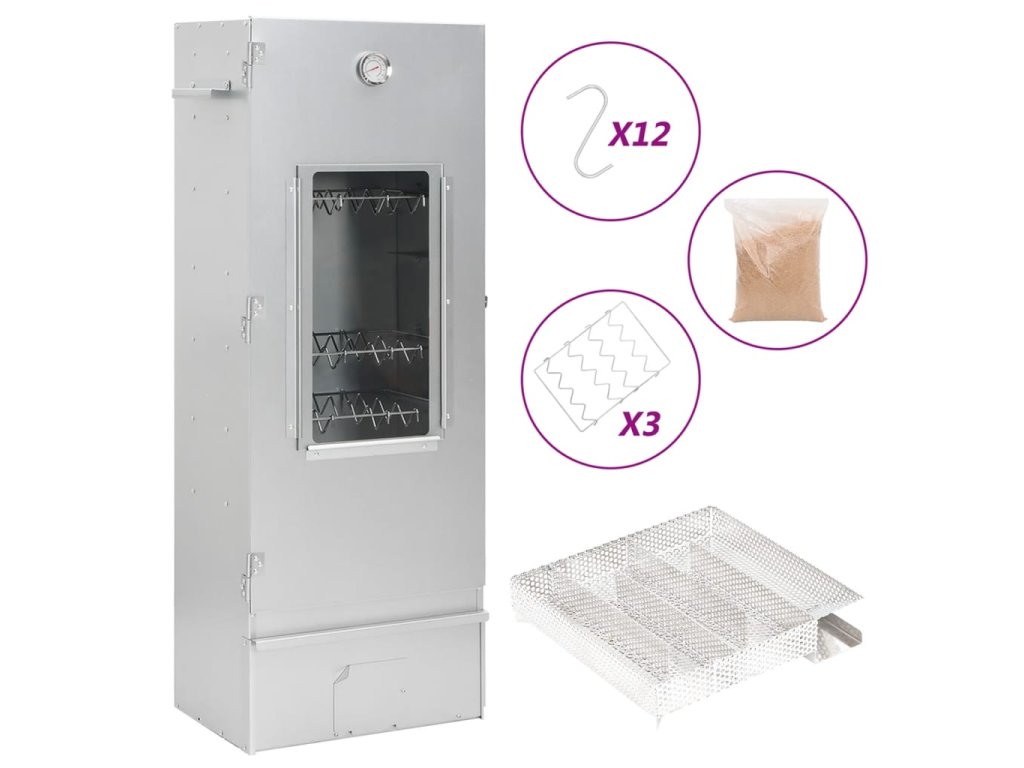 - Dostatek prostoru na uzení: Venkovní udírna poskytuje dostatek prostoru pro uzení masa, ryb, klobás apod. Pomocí přiložených háků ve tvaru písmene S a roštů bude grilování pohodlnější.
