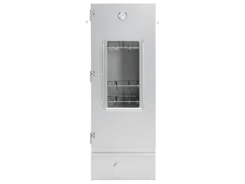 - Indikativní funkce: Udírna je vybavena teploměrem pro kontrolu teploty v komoře. Skrz skleněné okno udírny můžete sledovat pokrm uvnitř a zajistit tak co nejlepší přípravu.
