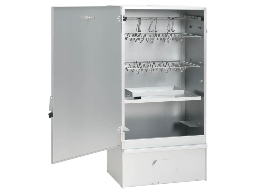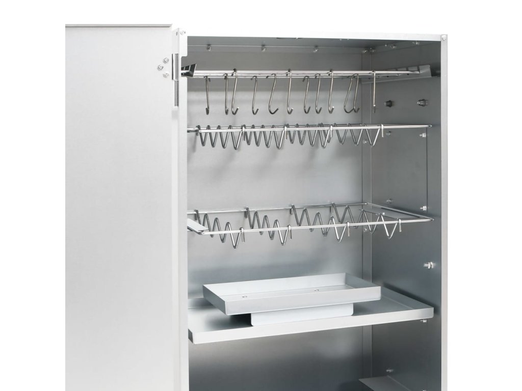 - Dostatek prostoru na uzení: Venkovní udírna poskytuje dostatek prostoru pro uzení masa, ryb, klobás apod. Pomocí přiložených háků ve tvaru písmene S a roštů bude grilování pohodlnější.