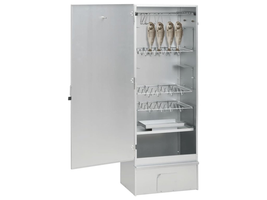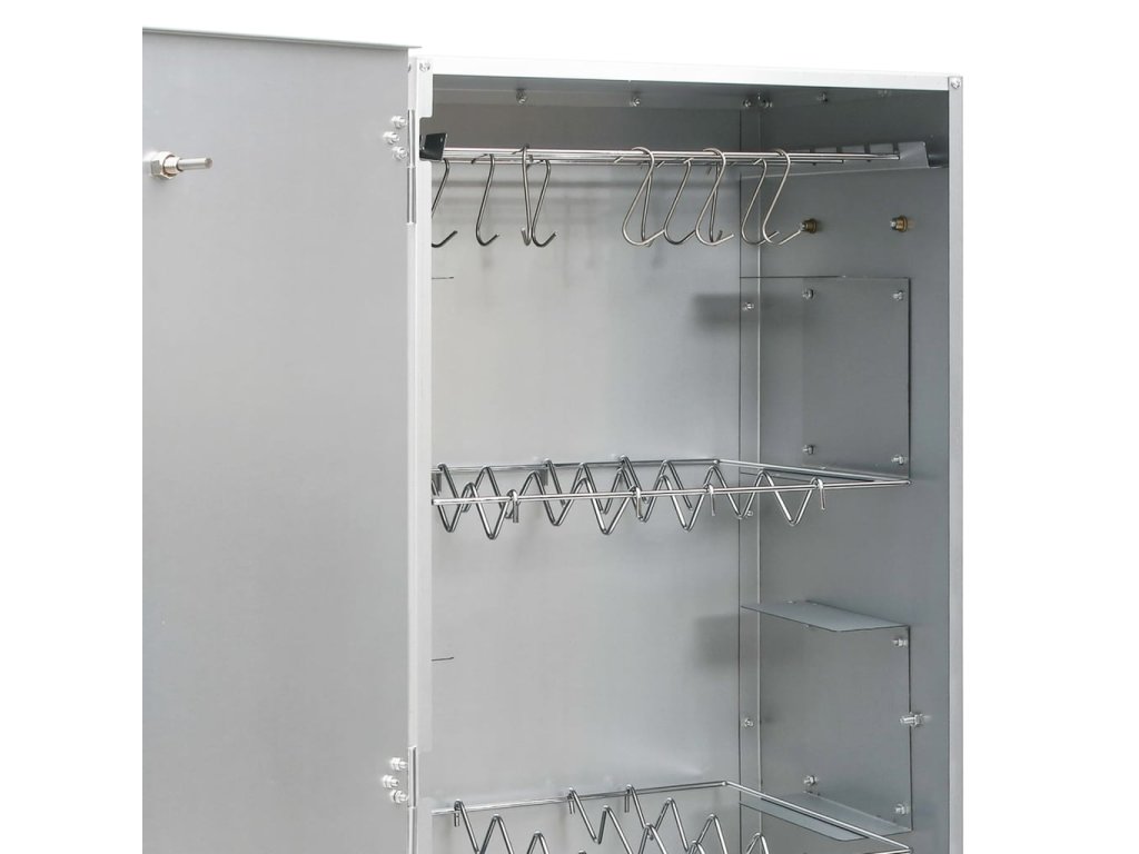 - Dostatek prostoru na uzení: Venkovní udírna poskytuje dostatek prostoru pro uzení masa, ryb, klobás apod. Pomocí přiložených háků ve tvaru písmene S a roštů bude grilování pohodlnější.